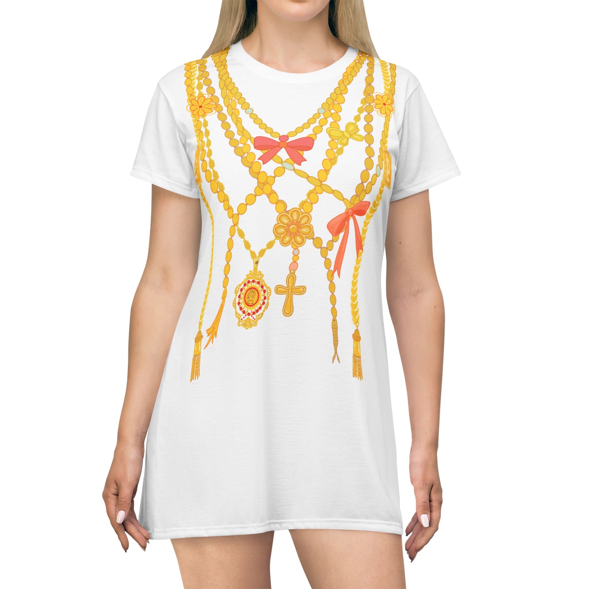 Vestido tipo camiseta “Joyas de la Pollera” (AOP)